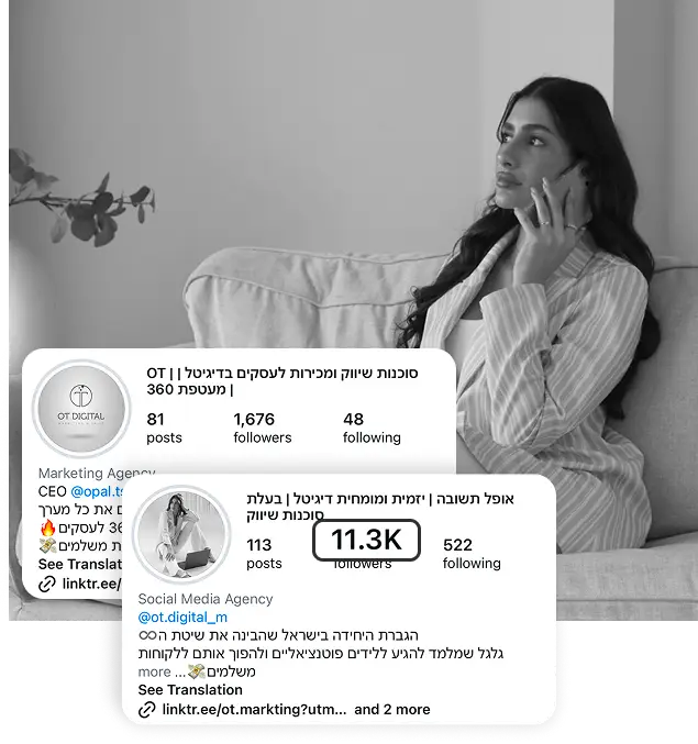 בעלת סוכנות שיווק ומערכי מכירות – ליווי לעסקים בדיגיטל, מייסדת ומנכ”לית סוכנות הפרסום OT, ובעלת תואר הנדסאית אלקטרוניקה.